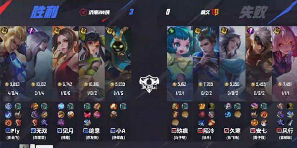 第二局,RW侠开局布置很清晰,进蓝区控制资源,Fly还拿到两个人头;RW侠三前排阵容容错率很高,10分钟经济已经领先6k;RW侠凭借经济优势滚雪球打运营节奏,毫无失误,再下一城先到赛点!本局MVP为RW侠Fly (彭云飞)关羽!