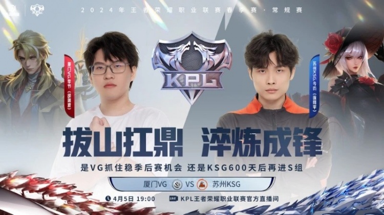 JRS直播网讯 北京时间4月5日,2024KPL卡位,今日比赛是由苏州KSG对阵到厦门VG!