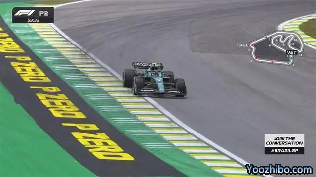 F1巴西大奖赛的二练在干地状态下进行,阿斯顿马丁车队的维特尔率先驶入了赛道。
