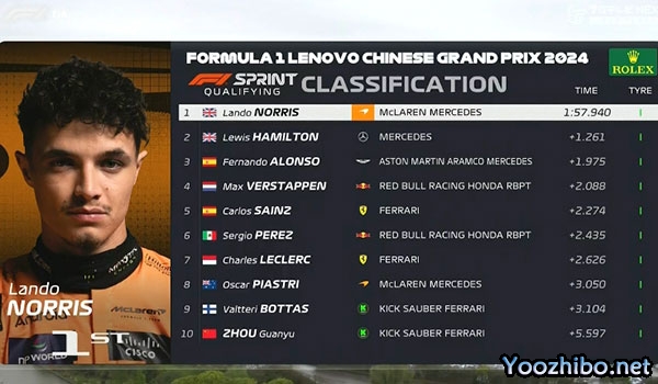 JRS直播网讯 北京时间4月19日,F1中国大奖赛冲刺赛排位赛结束,周冠宇进入Q3,最终排名第10。诺里斯获得杆位,汉密尔顿、阿隆索分列2-3位,周冠宇的队友博塔斯第9。