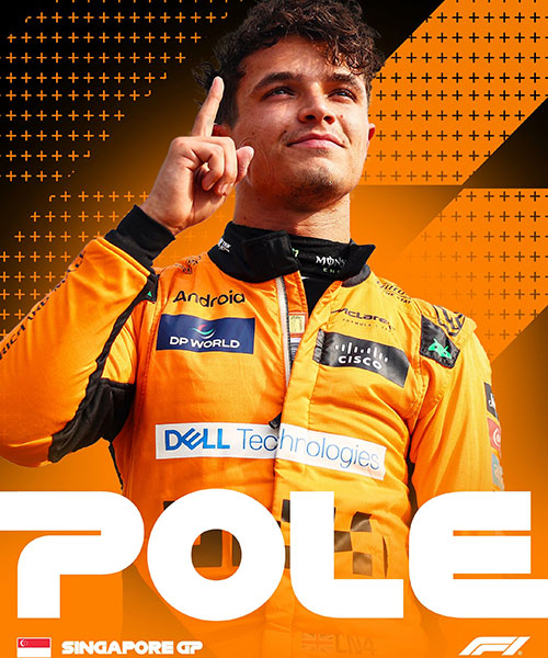 JRS直播网讯 北京时间09月21日,F1新加坡大奖赛排位赛,最终诺里斯杆位,维斯塔潘第2,勒克莱尔Q3最后时刻成绩被取消第9,塞恩斯撞墙引发红旗,索伯双车垫底,周冠宇第20。