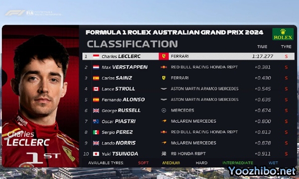 JRS直播网讯 北京时间03月22日,2024F1澳大利亚大奖赛第二次练习赛,勒克莱尔1:17.277收获周五最快单圈,维斯塔潘落后0.381秒!明天的排位赛会有悬念吗?