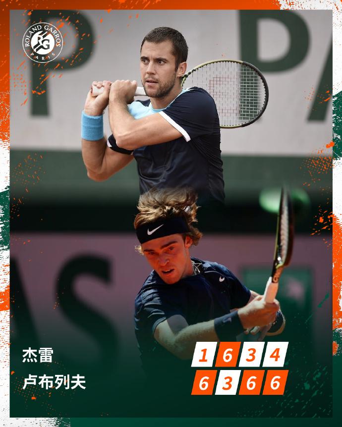 JRS直播网讯 北京时间5月29日讯 法国网球公开赛进入到第一比赛日的争夺, 男单7号种子卢布列夫小遇挑战,以6-1、3-6、6-3、6-4击败塞尔维亚好手杰雷,收获开门红。