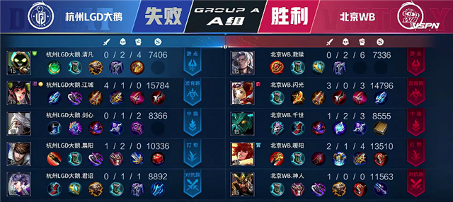 JRS直播网讯 5月8日2021KPL春季赛常规赛第七周第五日第三场比赛,由A组的杭州LGD大鹅对阵北京WB,以下是本场比赛快讯。