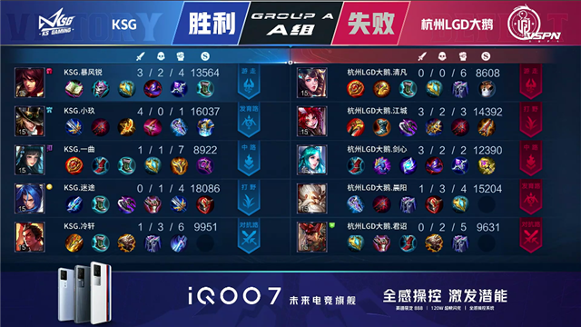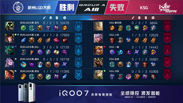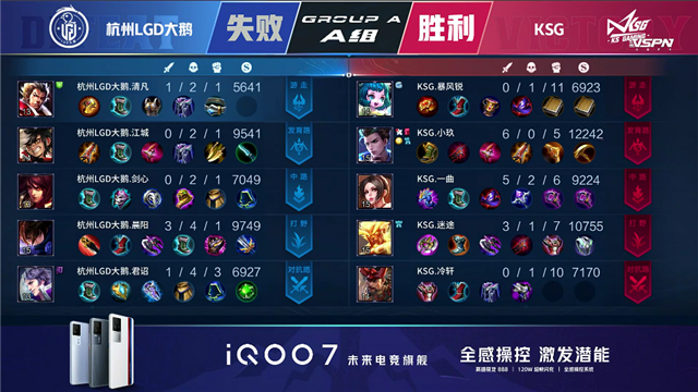 JRS直播网讯 5月3日2021KPL春季赛常规赛第七周第一日第三场比赛,由A组的KSG对阵杭州LGD大鹅,以下是本场比赛快讯。
