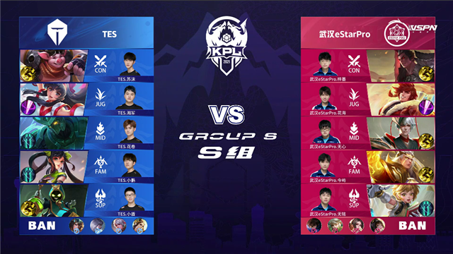 JRS直播网讯 4月11日2021KPL春季赛常规赛第三周第五日第一场比赛,由S组的武汉eStarPro对阵TES,以下是本场比赛快讯。
