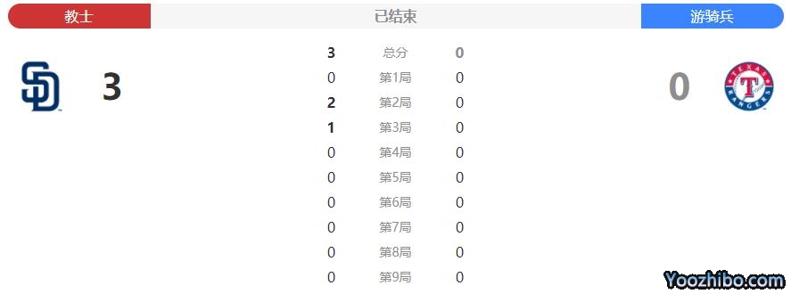 MLB常规赛 教士vs游骑兵 第3局 录像
