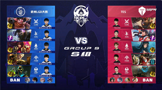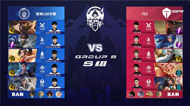 JRS直播网讯 4月7日2021KPL春季赛常规赛第三周第一日第二场比赛,由S组的杭州LGD大鹅对阵TES,以下是本场比赛快讯。