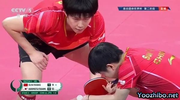 第一局混双比赛,中国队继续派出王楚钦/孙颖莎组合,他们以11-5赢下首局后,又以11-13、9-11连输两局,最终大比分1:2不敌日本组合张本美和/户上隼辅。