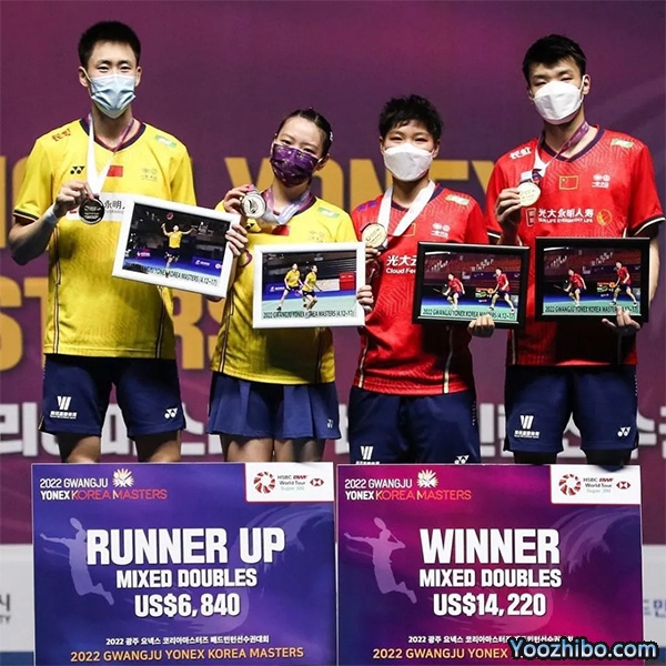 2022韩国羽毛球大师赛在4月17日进入到决赛日,在首场混双决赛中,奥运冠军王懿律/黄东萍21-17 21-17击败队友欧烜屹/黄雅琼,拿下2022赛季首个冠军。