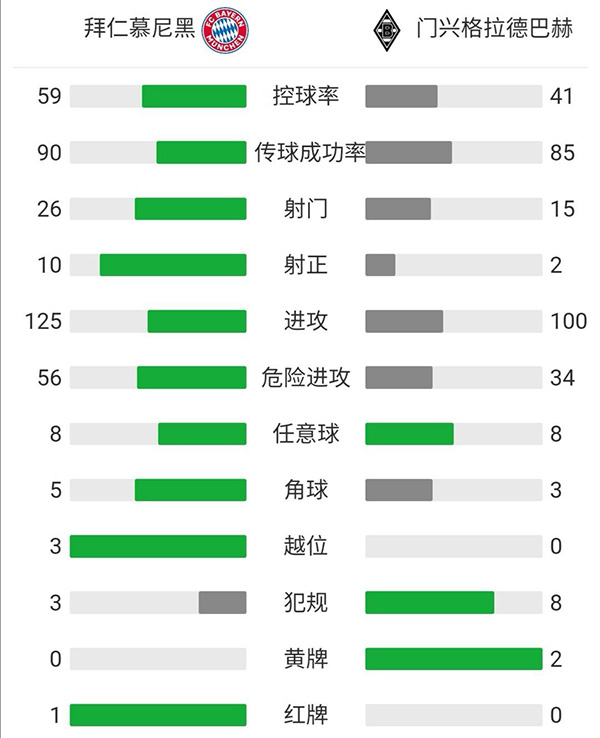 第2分钟,阿拉巴挑传球到禁区,中路科曼虚晃一下,右侧莱万跟进停球一脚抽射远角破门,拜仁1-0门兴!