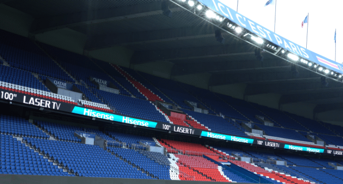 来到大巴黎主场王子公园球场的人们都会有这样一个感受:“主场屏幕更炫了”、“现场看球冲击力十足”。而这要归功于巴黎圣日耳曼全球官方赞助商-海信,他们做出的成果令人眼前一亮。