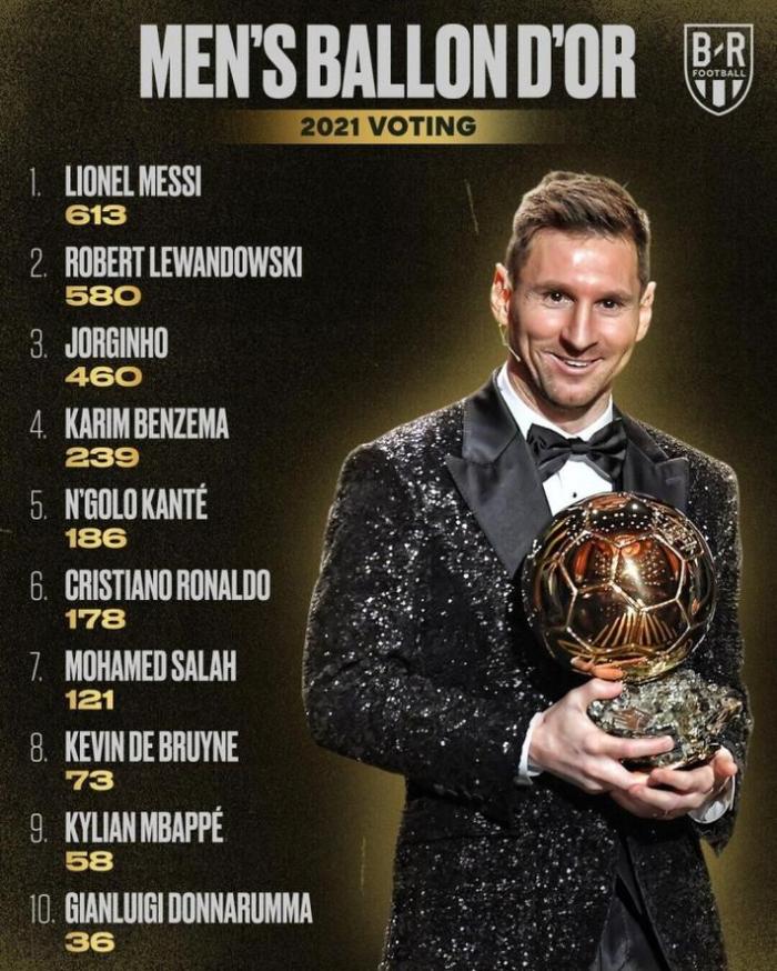 24直播网讯 ,金球奖颁奖典礼落下帷幕,梅西以613分夺得个人生涯第7座金球奖,以下为30名候选人获得的票数。