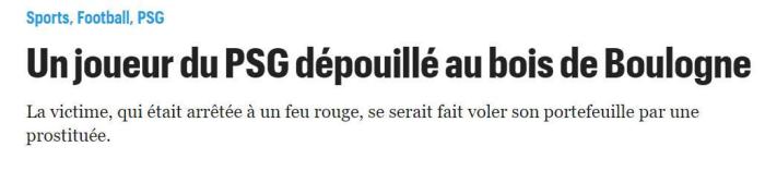 《巴黎人报》表示,这位巴黎球员在昨晚驾车等待红绿灯时遭到异装癖抢劫,劫匪抢走了他的钱包、手机等贵重物品,甚至还扒掉了他的衣服。