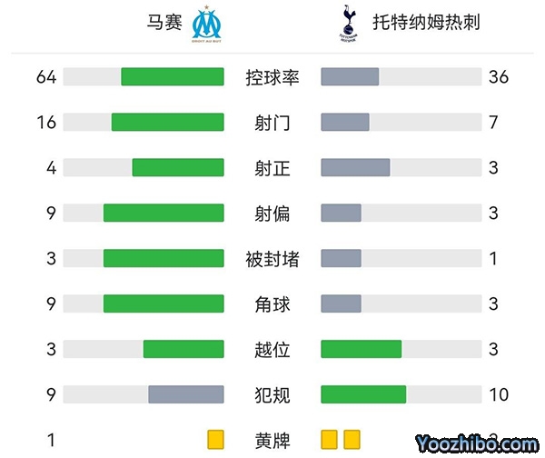 全场比赛结束,最终热刺客场2-1逆转马赛。