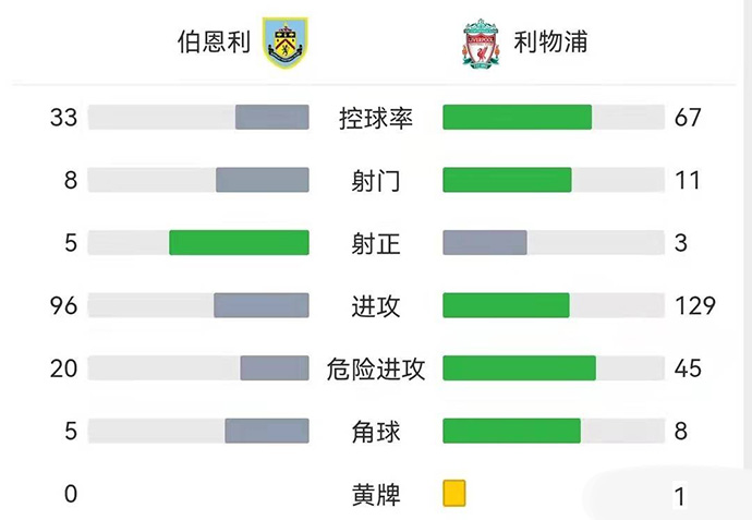 第86分钟,萨拉赫反击中送出妙传,若塔抢射偏出。全场比赛结束,利物浦1-0击败伯恩利,收获联赛四连胜。