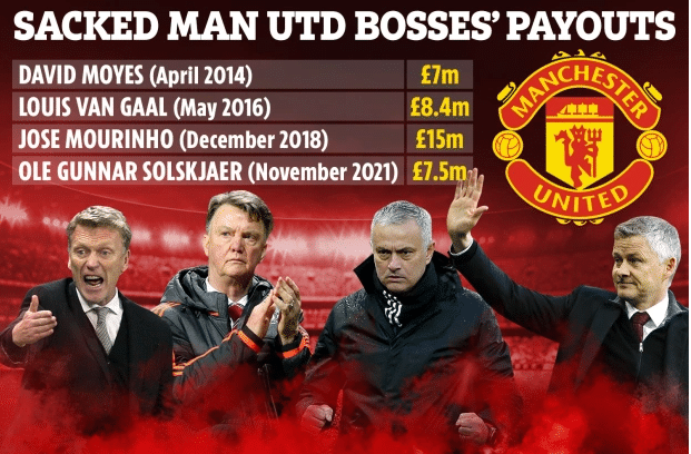 2014年4月,曼联确定无缘欧冠后,花费700万解雇莫耶斯。2016年5月,范加尔也因为丢失欧冠资格被解雇,红魔支付了840万违约金。