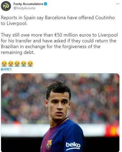 巴萨决心在今夏将他放进转会市场。不过埃弗顿、阿森纳等此前有意库蒂尼奥的球队,如今都纷纷拒绝了引进这位巴西国脚的可能。这才让巴萨想到了“拿人抵债”,让他直接免费回老东家利物浦的想法。