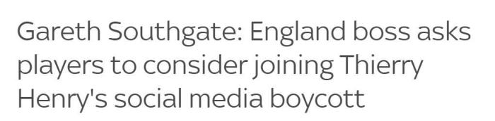 天空体育表示,索斯盖特早在2013年时就有意识的远离社交媒体,他建议他的队员们不使用社交媒体,但是不会强制他的队员在欧洲杯期间禁用社交媒体。