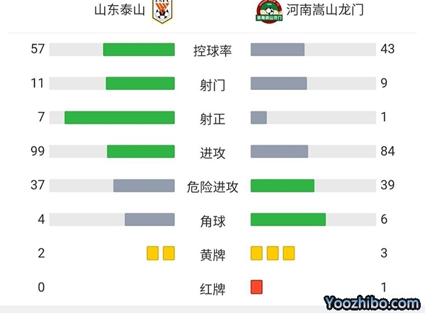全场比赛结束,山东泰山2-0击败河南嵩山龙门。