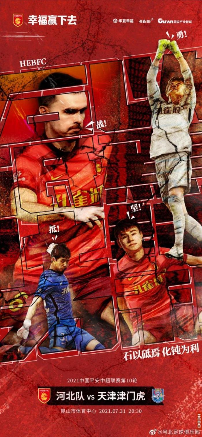 24直播网讯 北京时间7月31日20:30,中超第10轮,河北队迎战天津津门虎,赛前双方首发阵容出炉。